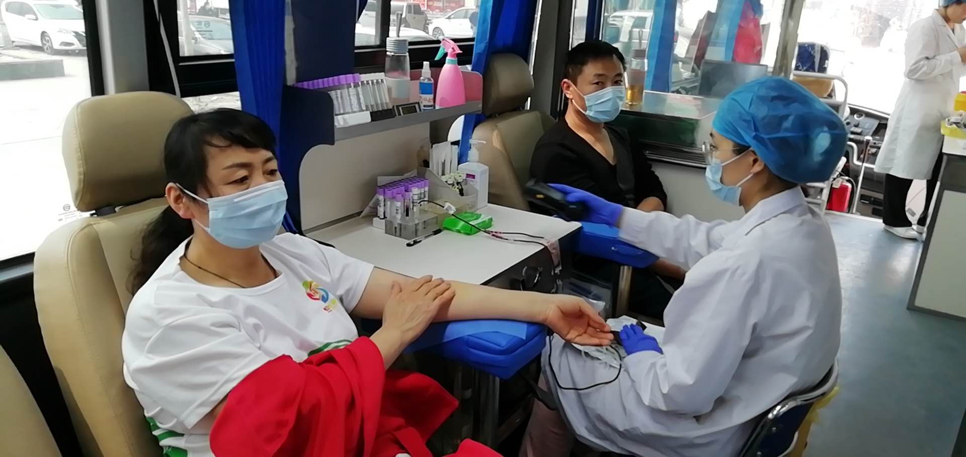 在曹县南湖采血点,黄美荣、黄世才、陈付岭在工作人员指导下,填表、体检、化验,撸起袖子献出拯救生命的热血。他们用微笑或是简短的手势和话语,为彼此的爱心举动而喝彩,组成了战“疫”中的感人画面。他们戴着口罩,匆匆赶来,又悄悄离去,但他们却成为这场战“疫”的坚强后盾。他们总是给予社会更多的感动,我们相信会有更多的“最美逆行者”一起捐献热血奉献爱心,守护我们美丽的家园,弘扬正能量。