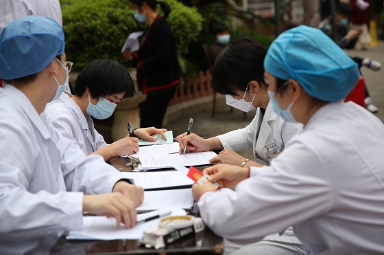 很多临床科室主任、护士长带头参加无偿献血,有的医务人员在工作岗位上忙完手头工作赶来,有的休息从家里特意赶来。