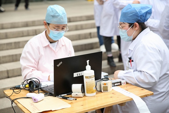3月26日早上,台州市中心血站采血车如约驶入医院,虽然天气微凉,但是丝毫挡不住大家献血的热情,采血现场秩序井然,前来参加献血的医护人员全部戴着口罩,有序地进行体温测量、填表、体检、化验、采血等。