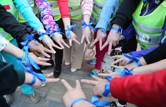 4月12日下午14时,20多名科尔沁户外献血志愿者来到了血站,进行了献血前动员,了解献血注意事项,并为每位志愿者系了蓝丝带,表达祝福。