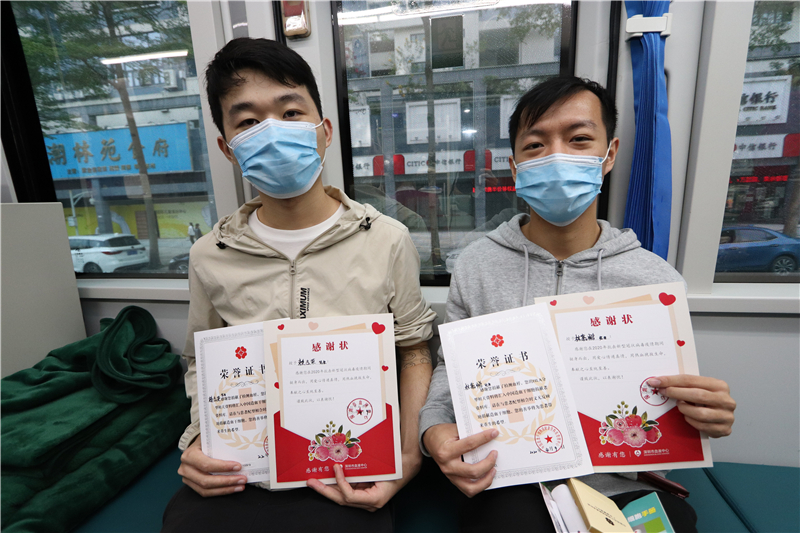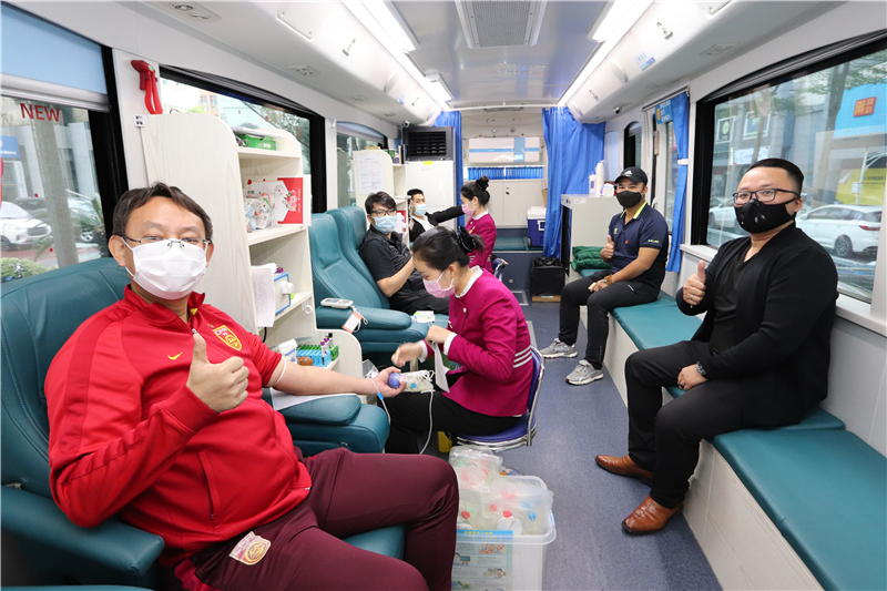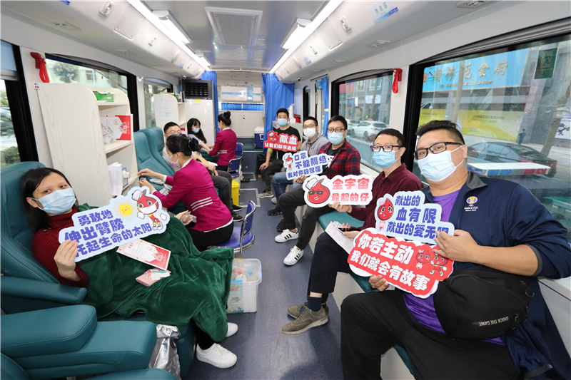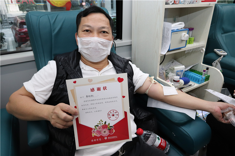 2月16日刚在总部捐献完机采的黄仪绍先生,是盐田区体育发展服务中心的工作人员,今天再次来到捐血车上成功献血,这次是他第11次献血。