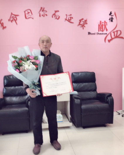 洛阳市第116位百次无偿献血者崔林浩:第1次献血时间2000年1月16日,第100次献血时间2019年9月9日。期间共捐献全血12次4450毫升,机采成分血97次118治疗量,先后3次荣获全国无偿献血奉献奖金奖(2012年、2016年、2018年)。