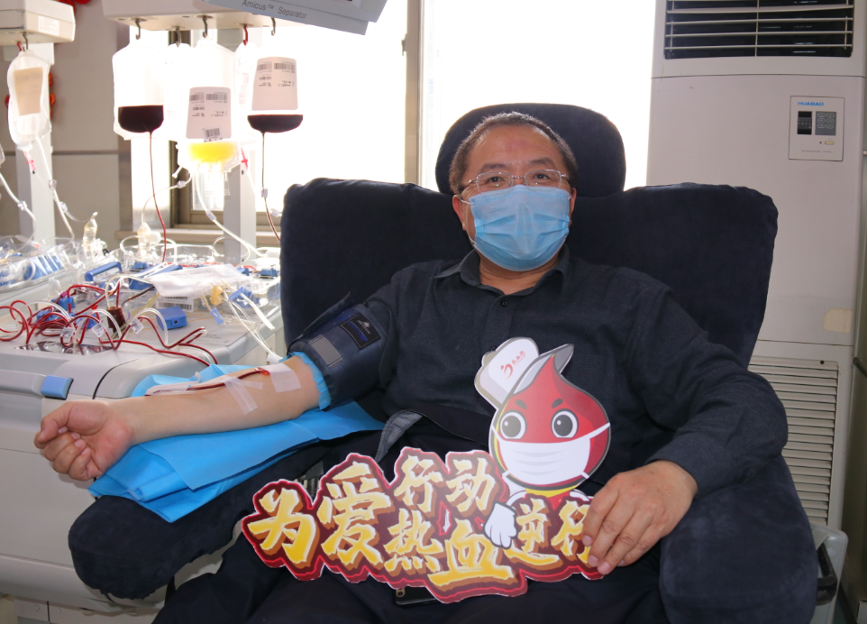 在这场抗击新冠肺炎疫情的战斗中,血液中心主任白林,每次献血间隔期满,只要他的身体条件符合要求,他都会走进机采献血室,撸袖献血,这是他坚守血液人初心的一种方式。