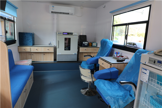 新增的两座景观式献血房车,车内宽敞舒适,献血设备一应俱全,分为登记、体检、采血、休息等多个区域,比传统的流动献血车更加舒适温馨。在位于人人乐超市前坪的献血房车内,市民李旭琳有幸成为了新房车首位献血者。“献血对身体有好处,也能帮助需要输血的人,我觉得挺好的。我家就在附近,现在有了献血房车感觉更加方便和舒适了。”正在献血的李旭琳说。