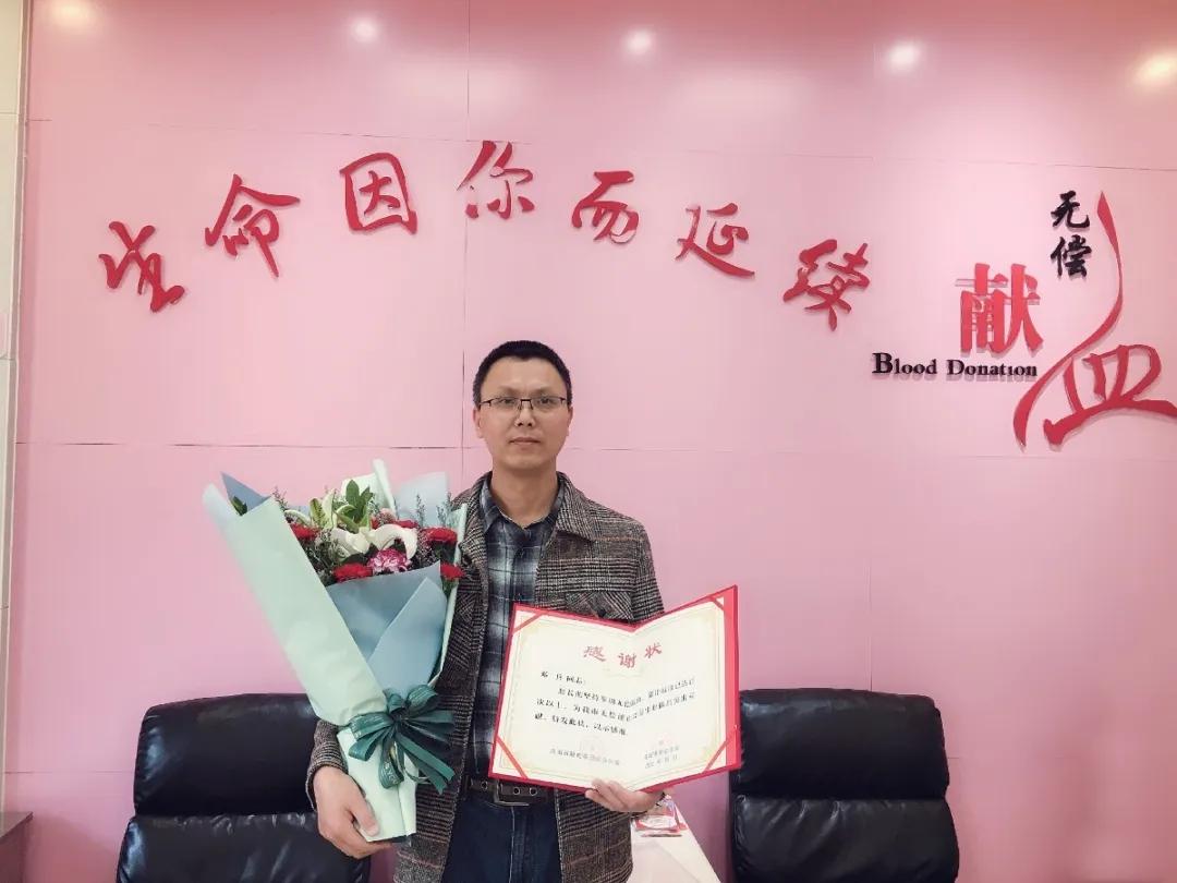 洛阳市第119位百次无偿献血者:第1次献血时间2008年7月30日,第100次献血时间2020年4月5日。期间共捐献全血10次4000毫升,机采成分血91次121治疗量,荣获全国无偿献血奉献奖金奖(2018年)。