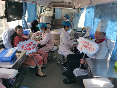 今年刚20岁的黄夫露是第一次献血,在同事眼中他是奔赴武汉的“抗疫英雄”。2月20日,黄夫露作为“扬州大厨”的一员驰援武汉,为扬州医疗队提供后勤保障,让医疗队员尝到了“扬州味道”。虽然年纪轻轻,但报名去武汉时他没有犹豫,他告诉记者,国难当头,作为中国人,奔赴湖北贡献自己的一份力很光荣。“刚开始去的时候也有压力,但很多医护人员对我们大厨表示感谢,那时候我觉得很激动,觉得为他们服务也是一种荣幸。”