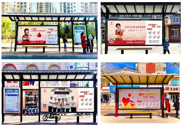 除此以外,在北京路、上海路及同心路的繁华地段,印有不同无偿献血宣传口号、献血点及献血流程的公交站台广告牌也分别在民族运动员村、逸馨苑、银川市第二人民医院、同心路市场东4个公交站台“上岗”,让市民在等车的时间里,树立无偿献血的理念。