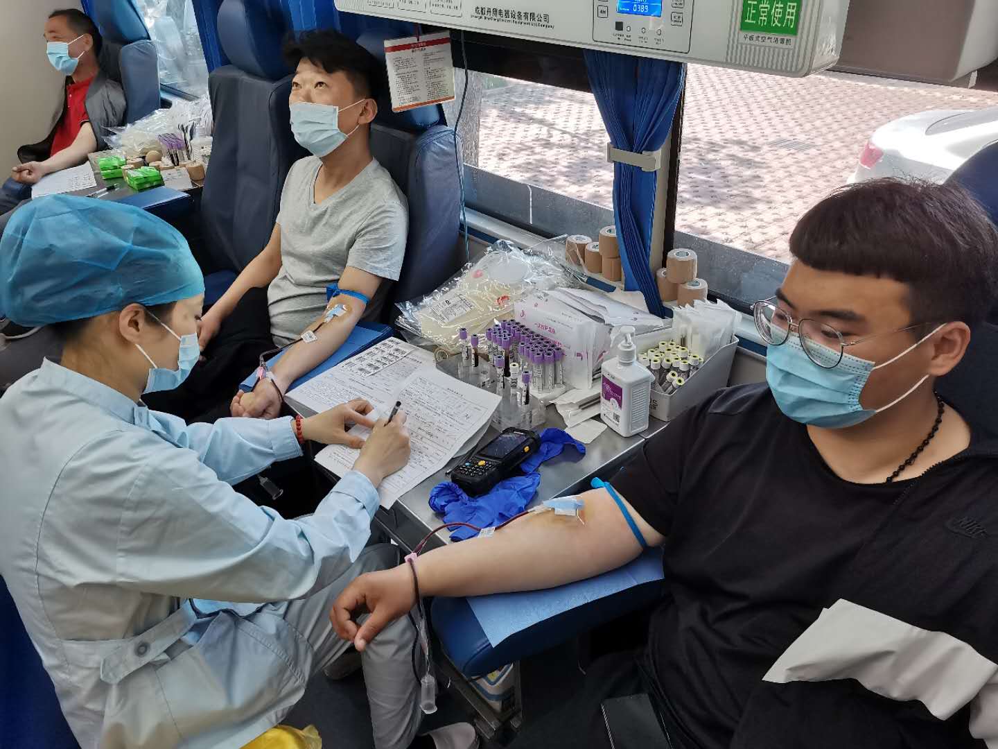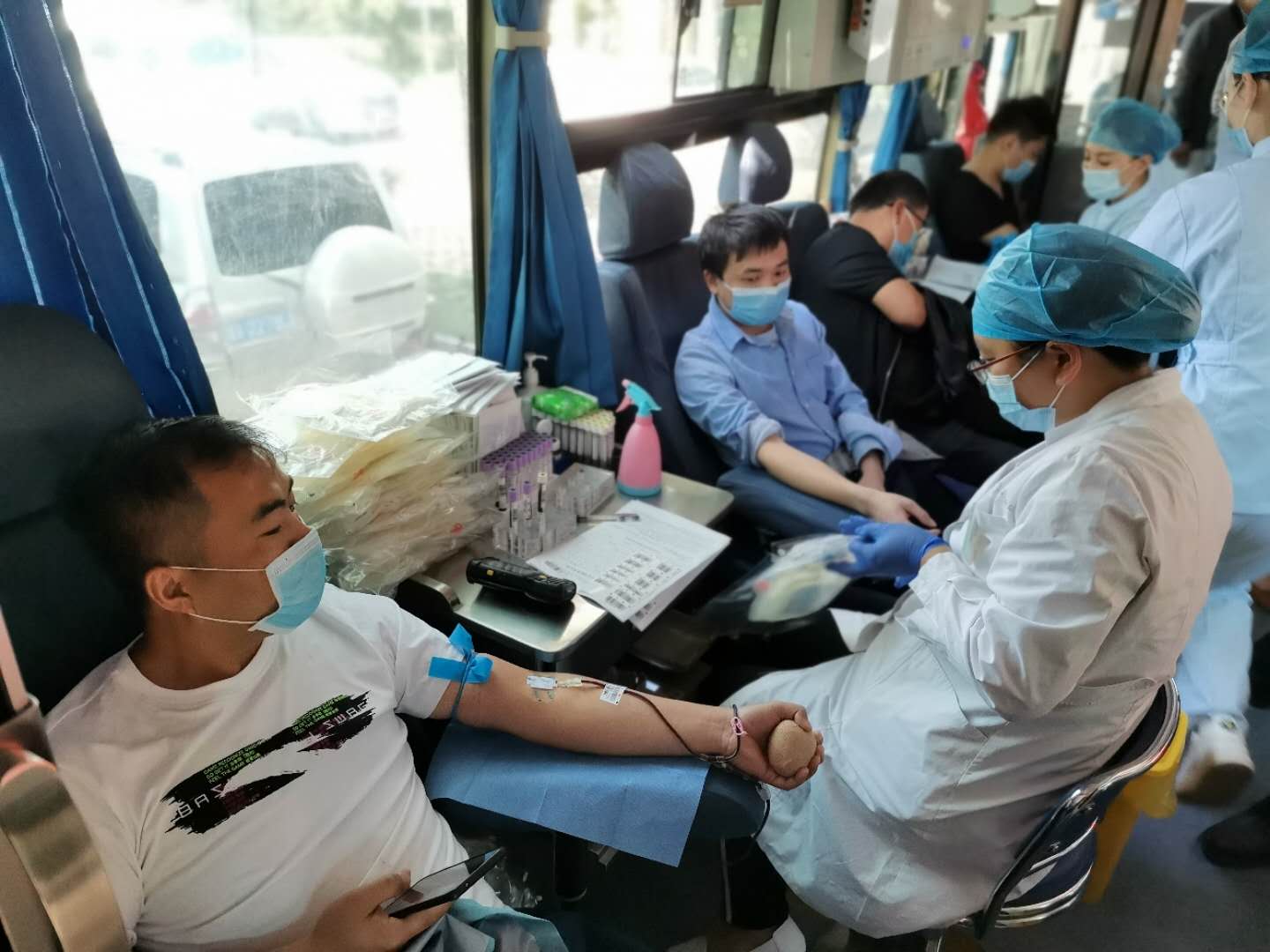 当上午8时30分,在菏泽市公路事业发展中心院内,菏泽市中心血站3辆献血车前已经排了很长的队伍。现场,献血人员在血站工作人员的指引下,依次排队填写登记表、测血压、抽血化验……在献血车内,当鲜红的血液流满储血袋时,他们脸上洋溢出幸福的微笑。市公路勘测设计院院长、书记王方奇,市公路事业发展中心工程四处副书记刘丕敬、工程三处马传林、田春雷、朱益建等人也一直坚持无偿献血,他们纷纷表示,今后还会坚持参加无偿献血活动。来自中铁十局濮新指挥部办公室主任李志东,此次是他第二次献血,今天他们一共来了18名工作人员,其中17名工作人员献血成功。“第一次献血是在2008年上高中的时候,那时候四川发生了汶川大地震,为了献一份爱心,我跑去献血200毫升。”李志东说。”据了解,市公路事业发展中心曾多次到养老院慰问孤寡老人、开展慰问儿童福利院孤残儿童、参加市希望工程救助等活动。