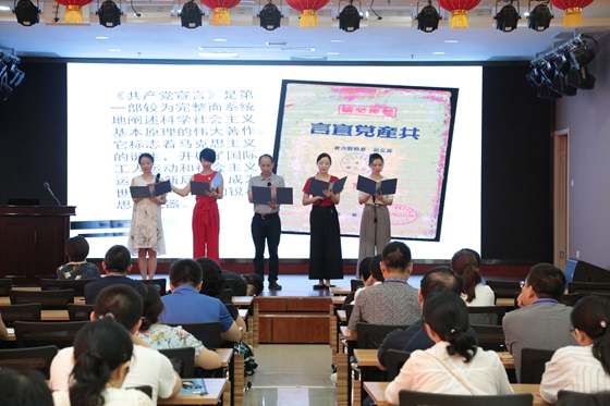 随后,“学马列、忆初心”展示活动拉开帷幕。中心党员代表袁明超、余谨、江梦天、彭枫、郑雪接力朗读《共产党宣言》,重温马列经典原著;紧接着开展了“讲故事、学马列、忆初心”为主题的演讲活动,各支部代表谢晋、付荣、熊晶、袁辉结合个人工作实际主题演讲,忆共产党人往昔峥嵘岁月,纪念马克思诞辰200周年。