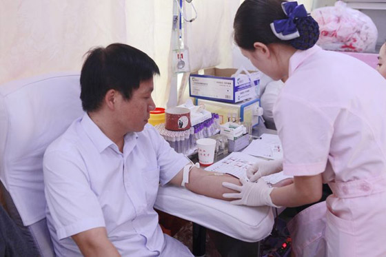为了确保活动的顺利进行,主管行长李逸文主动协调献血车停放事宜,确保血站工作人员有序工作。分行党委书记马文豪,纪委书记王欣刚来到献血点,主动献血,为献血现场带来阵阵欢笑。分行机关、分行营业部、汉滨支行、兴安路支行等员工纷纷来到安康血站设在分行机关门前的献血点前,填表格,量血压、验血型,伸出手臂,献上自己的血液。