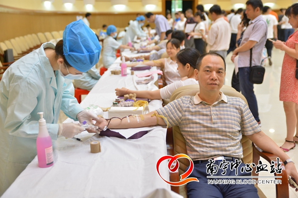 6月29日,“无偿献血 党员先行——2018年南宁市公务员献血月”活动启动仪式在市政会议中心举行。300多名公务员代表、党员愿者、驻大院官兵参加活动,当天共有198人成功献血60650毫升,发挥先锋模范作用。