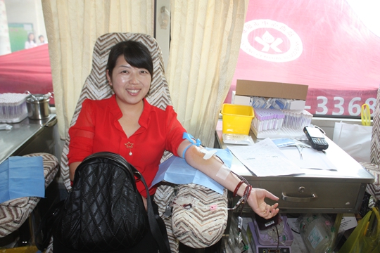 和大学生一块献血奉献爱心,梁轶娜感到特别高兴,觉得自己也年轻了好多,生活在奉献中充满快乐和幸福,她经常在校园内外分享参加无偿献血的快乐。梁轶娜说:“太方便了,只要陕财职院南校区开展献血活动,我就知道自己献血的半年时间到了。”