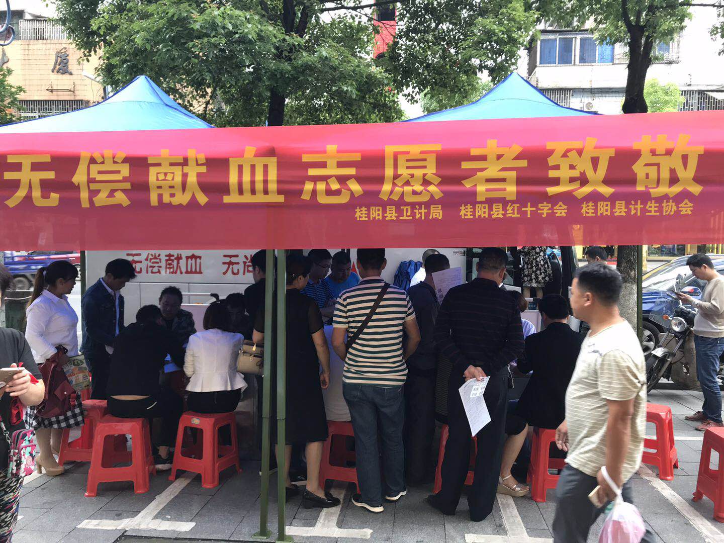 据统计,桂阳县每年有2300人次参与无偿献血活动。其中,鹿峰街道肖小兵,连续18年坚持每年至少献一次血,目前已献血134次,是该县献血最多的。县人民医院欧阳珍、浩塘乡邓祥杞连续5年献全血10次。