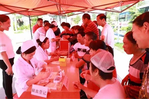 授牌现场,渭南市中心血站为当地村民免费提供测血型、量血压以及健康咨询服务,并进行献血常识抽奖互动,并为积极参与互动的村民赠送了爱心小礼品,部分青年人积极参与献血。