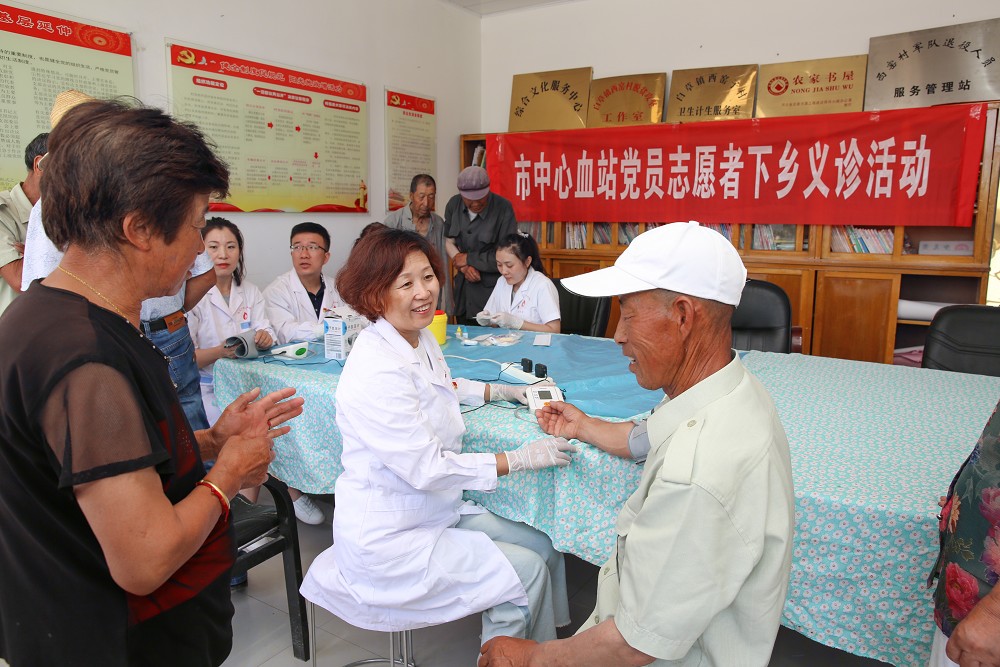 为纪念建党97周年,7月5日上午,市中心血站党总支组织部分党员走进帮扶村赤城县百草镇西窑村进行义诊活动。为村民量血压测、血型、宣传血液及无偿献血知识。此次义诊宣传活动,共接待群众义诊咨询30余人、发放无偿献血宣传资料70余份。通过这次活动,村民们对血液知识有了初步的了解,加强了自身健康意识,增进了工作组与村民的情感,为更好地开展扶贫工作奠定了基础。