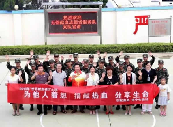 6月28日下午3点,市中心血站组织无偿献血志愿者来到武警淮安支队执勤二中队开展了以“迎七一,颂党恩——爱心奉献在军营”为主题的无偿献血宣传活动。