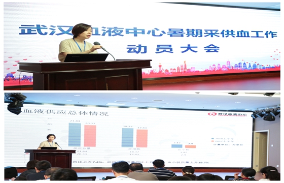 为深入推进武汉血液中心“两深入、两服务、两提高”党建品牌建设,切实做好我市暑期“淡季”采供血工作。7月10日下午,武汉血液中心暑期采供血工作动员大会暨党建品牌建设推进会在学术报告厅举行,中心领导班子、全体中层干部、招募科全体工作人员、行管后勤职能科室全体工作人员参加会议。