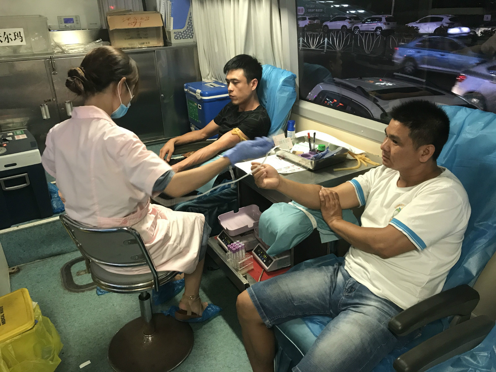 7月11日晚上7点,路上的行人越来越多。人群中,记者看到了一张熟悉的面孔——累计献血105次,带领全家17口人加入到无偿献血队伍中的何志龙。当天,他是专门陪同女儿何美婷参加献血。今年25岁的何美婷,在她11岁时,父亲就开始了无偿献血。“这么多年,看到父亲一直在献血,也没什么问题,而且献血更是一份爱心。”何美婷说,在父亲的耳濡目染之下,19岁时她就参加了人生中第一次献血,到现在已经献了7次。