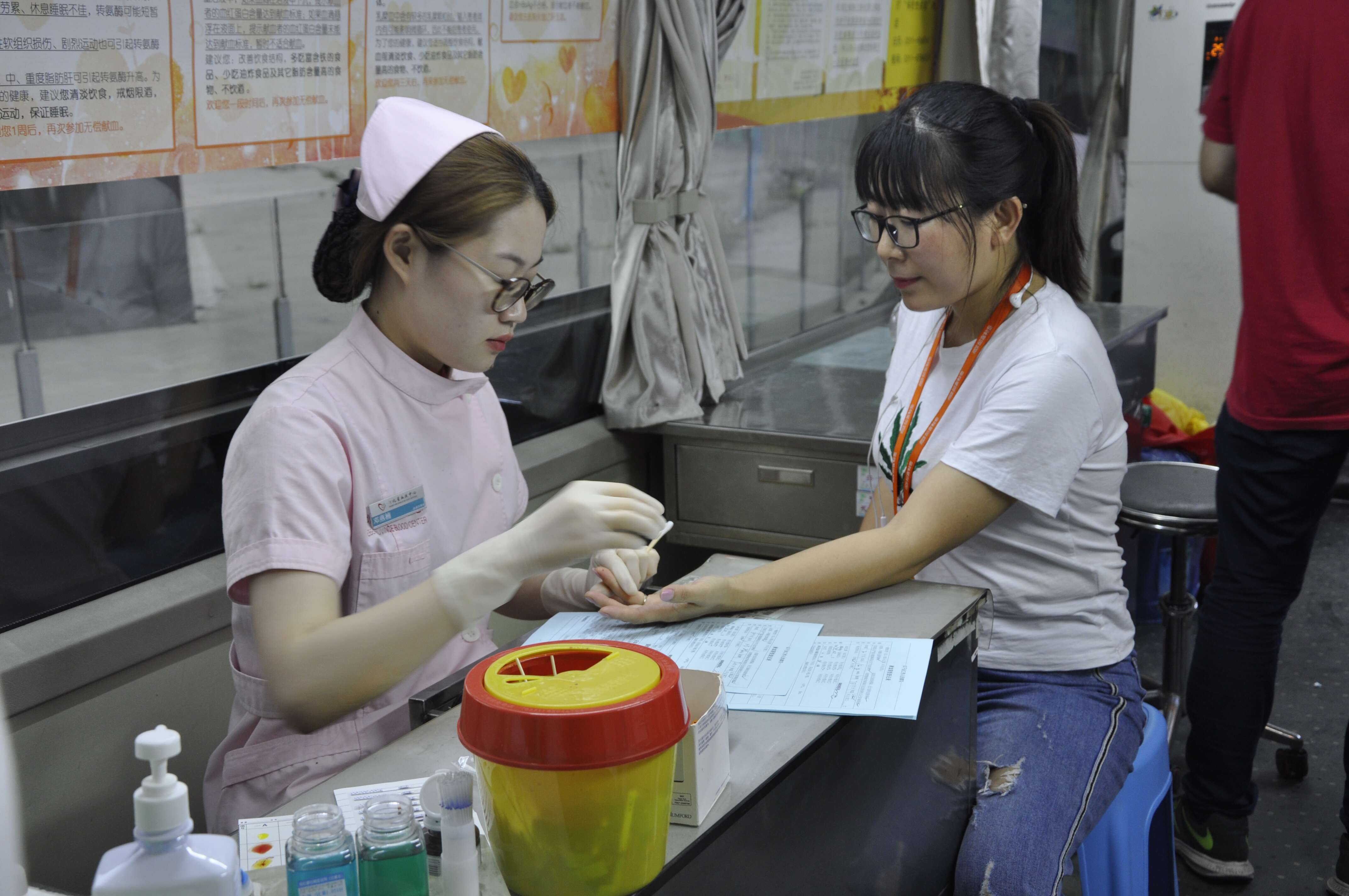 河北码客教育学校学校学生正在化验准备献血。
