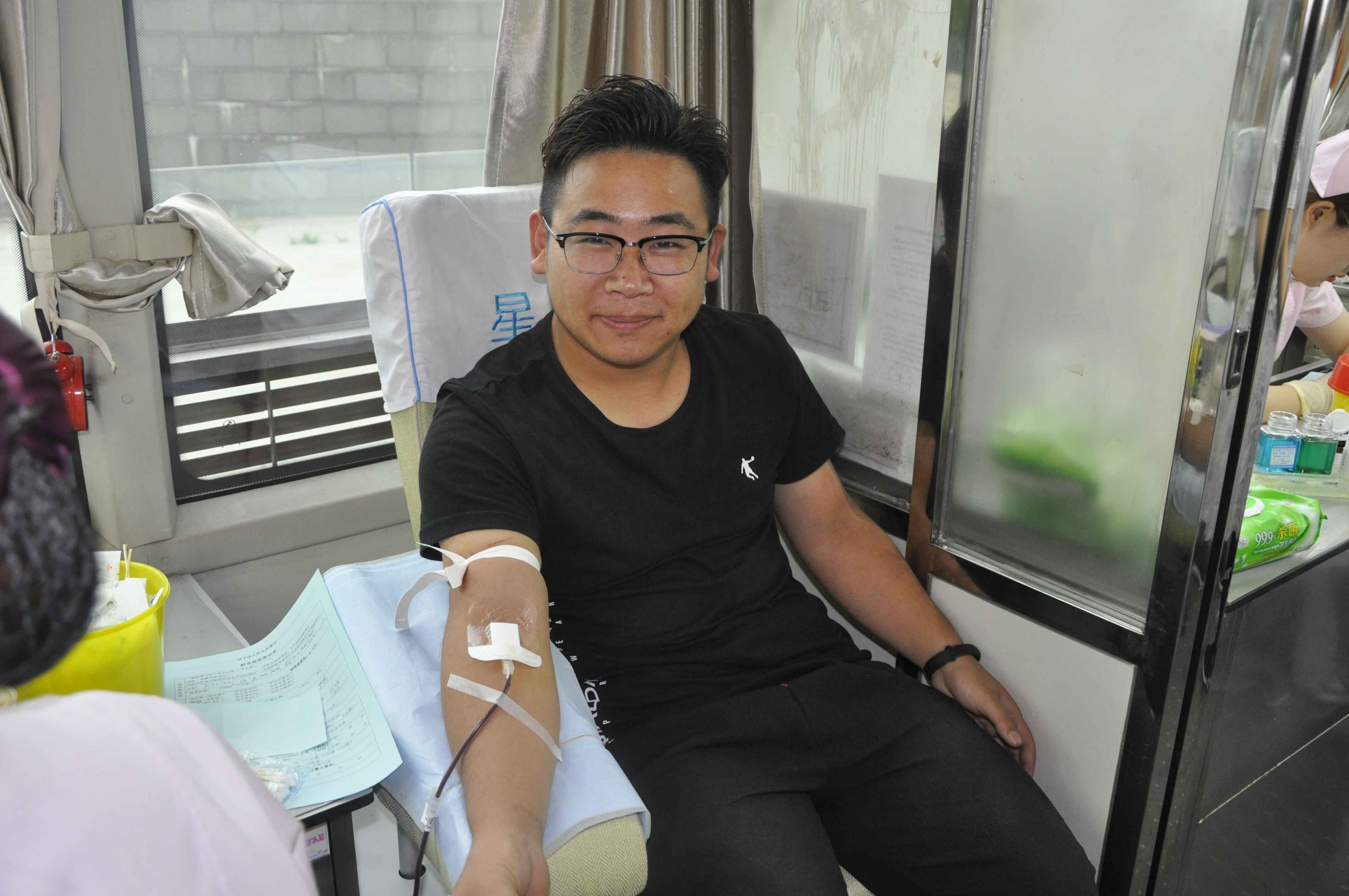 河北码客教育学校学校学生谭伟正在献血。