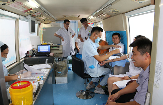 烈日下,医务工作者无偿献血传递爱心