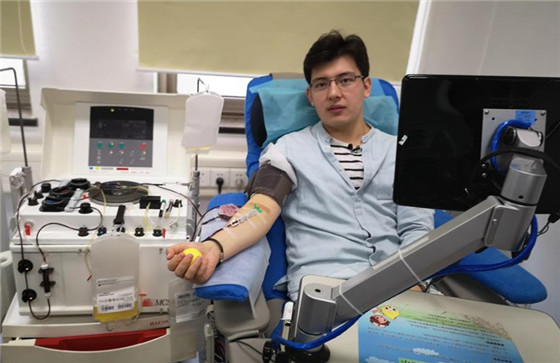 鲁斯兰一名来自哈萨克斯坦的留学生,当他第一次看到停在海大校园内的献血车时,便萌生了献血的想法,而第一次献完血后他便得知自己的血型特殊,是一种在中国比较稀缺的Rh阴性血,在1000名汉族人中只有三、四个人是该血型,因此又被称为“熊猫血”。那时他便暗暗下决心要定期参加献血,为跟自己有着同样稀有血型的中国朋友们储备血液。“开始时,由于汉语不好,听不懂医生的解释,我每个月都去献血,一次次被婉拒。”鲁斯兰笑着说到。 因当时我国的相关法规规定,献全血的间隔期是6个月,自那以后,每隔6个月鲁斯兰都会献一次血。他说:“我母亲从小就教育我要乐于助人、积德行善。我认为爱是不分国界的,帮助任何国家和民族的人,都可以带来心灵上的慰藉。”