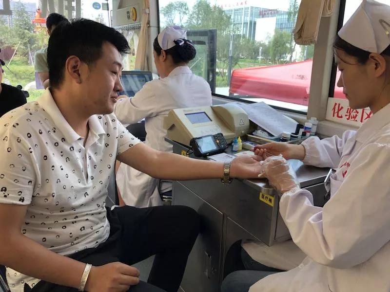 时,参加献血人员忙完工作,陆续来到献血现场,在血站工作人员的引导下,有序进行登记、体检、化验,合格后参加献血。献血过程中,医护人员也耐心在现场宣传血液医学知识及献血后的注意事项。
