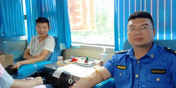 在无偿献血的城管队伍中,大多数同志已参加过多次无偿献血,他们在献血时积极向首次献血的同志宣传无偿献血对身体的好处和相关注意事项。“献血活动很有意义,能够帮助到需要帮助的人,自己也会变得快乐起来。只要自己的血液合格,就会一直坚持献血。”正在献血的周昌智说,今天是他第十四次参加无偿献血活动,对他而言也很有纪念意义。据了解,从2003年开始,周昌智已经坚持献血十五年了,累计献血量也达到了3400毫升。像周昌智这样每年坚持献血的城管干部职工还有很多,献血证上也记载了他们献爱心的丰功伟绩。