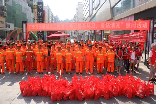 一袋血可以挽救一个人的生命;炎炎夏日,一瓶装满爱的饮用水,可以清凉一座城!广元无偿献血志愿者协会一直致力于社会公益事业,在开展无偿献血志愿服务的同时,先后多次开展关爱环卫工人、孤寡老人等公益活动,为社会事业发展作出了积极贡献。志愿者们倡议:在省运会即将到来之际,希望更多的爱心企业、爱心人士关注城市管理工作,关心环卫事业,关爱环卫工人,为树立广元城市新形象作出应有贡献!