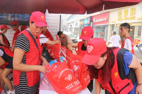 上午9点,骄阳似火,参加慰问活动的领导和嘉宾分别作了简短的慰问讲话,对我们的“城市美容师”进行了肯定和勉励之后,协会向100名“城市美容师”的发放了矿泉水、洗衣粉、毛巾、香皂、正气液、护肤品等慰问品,表达了无偿献血志愿者对广大环卫工人的尊敬和爱护。