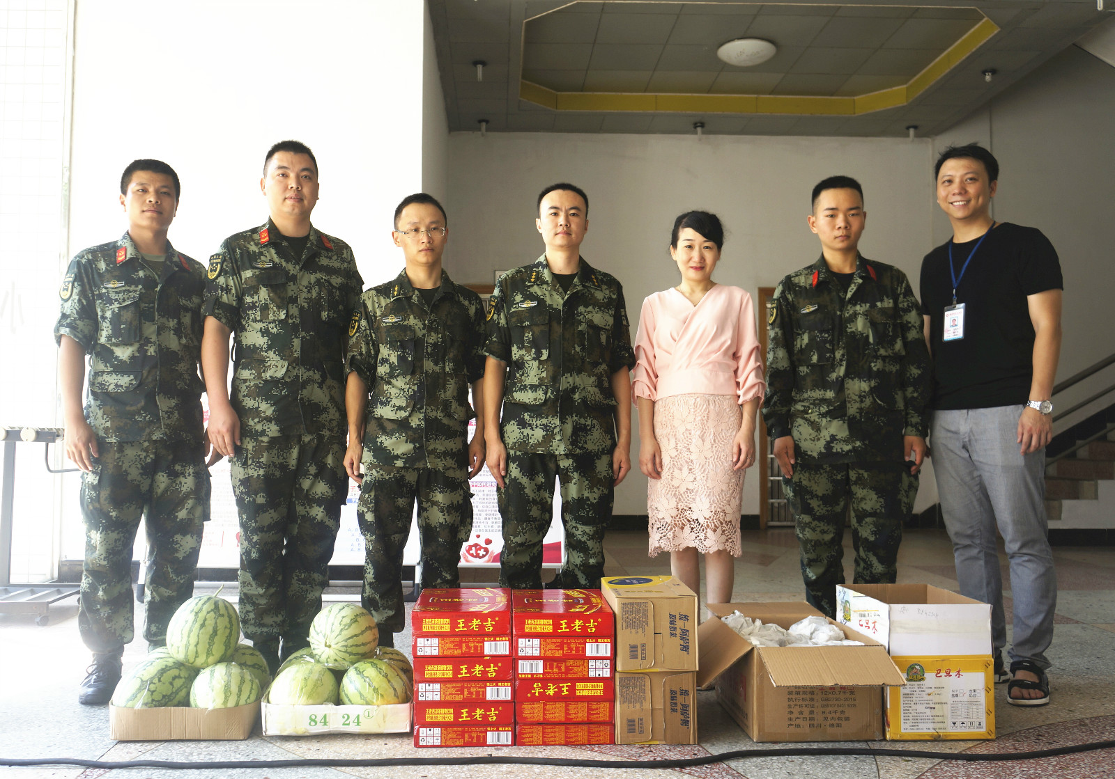 7月20日,“八一”建军节来临之际,市中心血站副站长史艾娟一行来到武警郴州支队,向部队官兵们送去了节日的祝福和问候,并送上慰问物资,感谢他们多年来对郴州市无偿献血事业的支持与帮助。