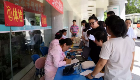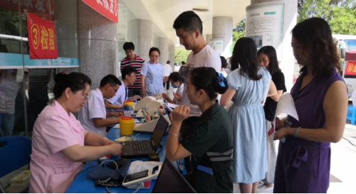 炎炎夏日,献血活动从早晨9点一直持续到下午5点多结束,共有有78名医务工作者捐献血液28000毫升。
