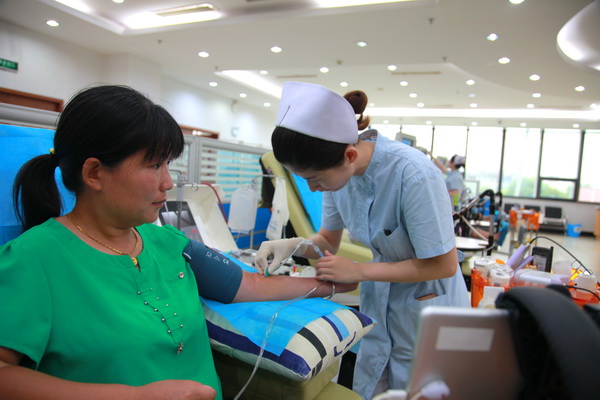 现在王敏开始捐献成分血,她说,以前全血得间隔每半年才能献一次,现在成分血可以每个月都献,只要血液中心给她发信息,告诉她可以献血了,她就会抽空来,一早过来,献血完血,10点赶回工地给工人们做饭也不耽误。