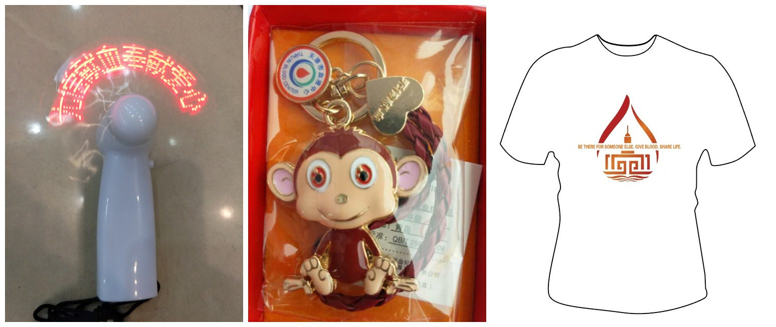 凡是参与无偿献血的爱心人士将获得由天津市血液中心精心准备的提供准备的各种防暑精美礼品,夏日专属T恤衫、消暑小风扇、避雨利器雨伞、专属钥匙扣,有爱又有意义。