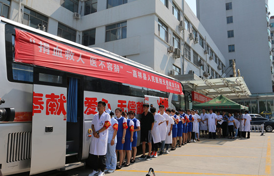 7月24日,嘉祥县人民医院组织了“捐血救人 医不容辞”无偿献血活动,全院职工积极响应,踊跃报名,在检验科曹顺山主任的组织安排下,上午九点钟,采血车前就排起了献血长队。各科室医务人员按秩序填写献血征询表、体检、初筛、献血,虽然天气炎热,日晒强烈,却没有一位医务人员退缩,长长的献血队伍不时有更多的人员加入进来。