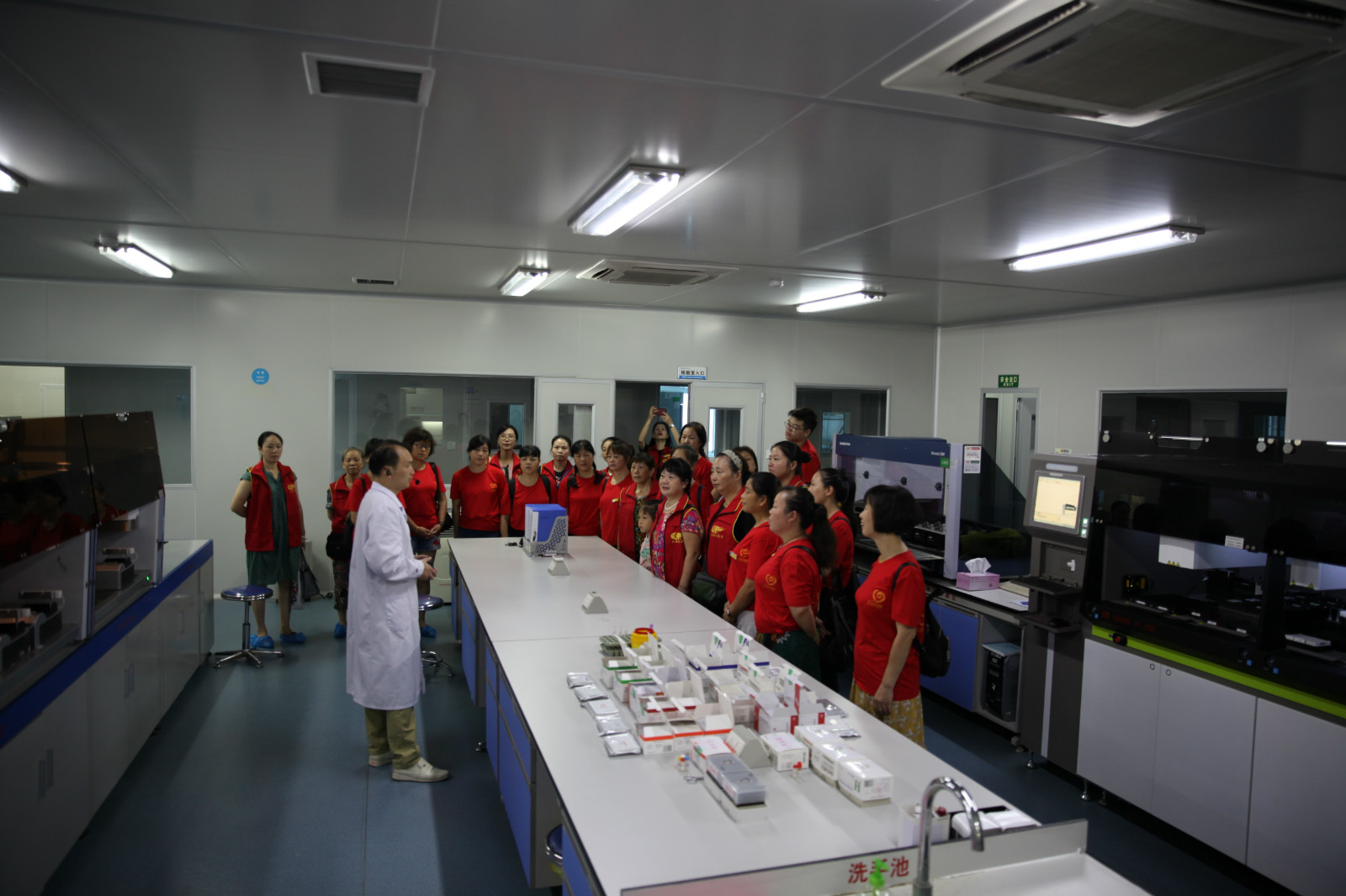 在检验科,大家了解到每一袋血液,都要用国产和进口两种试剂由不同的工作人员对乙肝、丙肝、艾滋、梅毒、转氨酶、血型进行仔细的检测,在现有的检测技术水平下,尽最大可能检出不合格血液,确保发往临床的血液安全有效。严谨的操作流程和先进的检测仪器让大家称赞不已。