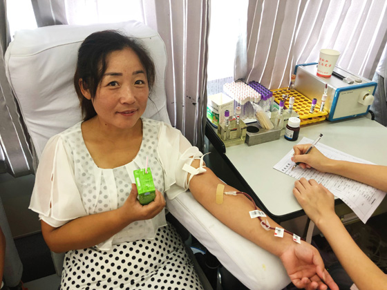刘善英是三元村的妇联主任,每年定期献血,每次都主动捐献400毫升。刘主任平时非常热心,亲切近人,经常带领村上的妇女开展文体活动,在群众中有着很强的号召力,这次她也为了献血活动各方动员,鼓励大家一起来献血。