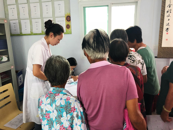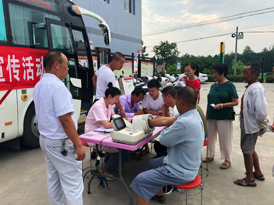 这边村民们踊跃献血,那边城关镇卫生院的医务工作者认真地为每位村民体检,提供健康咨询。