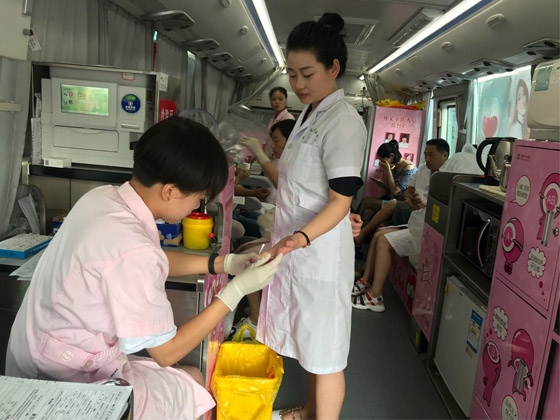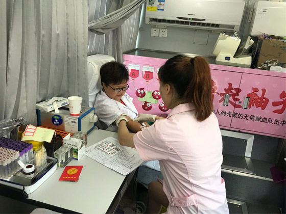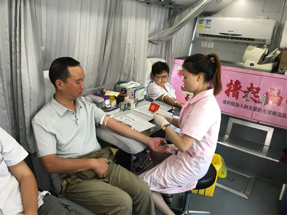 一大早,中心血站的献血车就到达了新城社区卫生服务门前,中心职工积极响应,踊跃献血,不仅自己参加,还发动自己的亲朋好友来参加。大家在血站工作人员的引导下有序的填表登记、测血压、验血,检验合格者陆续上车采血。他们当中既有长期坚持献血的爱心奉献者,又有第一次献血的新面孔,大家为能够参与这次爱心活动感到光荣和自豪,用自己的点点热血,为社会奉献爱心、奉献真情。