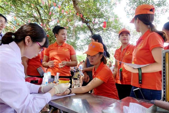 土尾村是海南著名的“献血村”,村小组组长王泽谦更是铁杆献血达人。当天,土尾村200多名外嫁女相约从四面八方回乡参加集体献血公益活动。