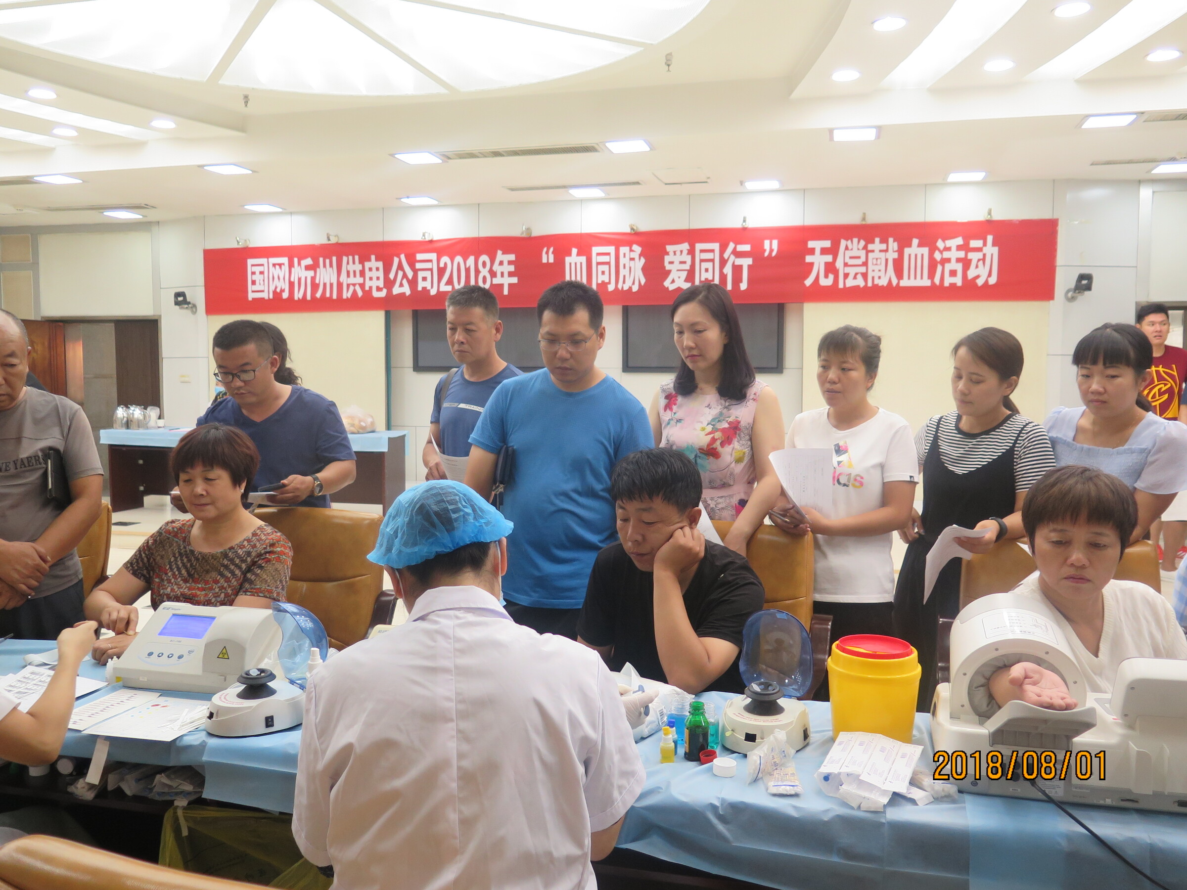 国网忻州供电公司组织开展无偿献血活动,公司广大干部职工踊跃加入无偿献血的行列,用实际行动传递友爱互助的文明风尚。