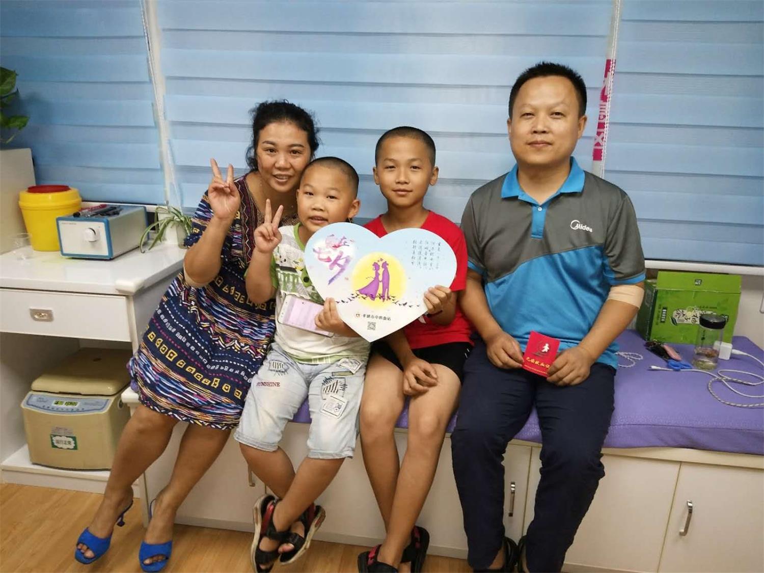 2005年七夕那天,刚结婚不久的黄云星先生和妻子陈红梅女士相约来孝感人民广场捐血屋献过爱心。时隔13年后,他们已经有了两个儿子,大儿子11岁,小儿子5岁。七夕这天,夫妻二人“故地重游”,再次携手献血献爱心。瞧这一家四口,笑得多开心!。