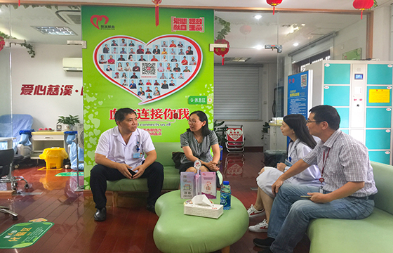 图为黄凯副站长一行慰问江北献血屋工作人员