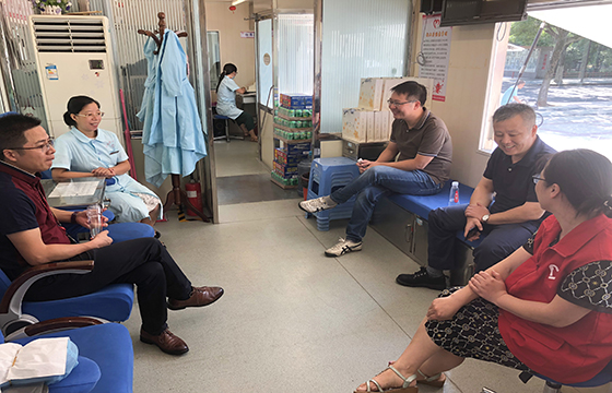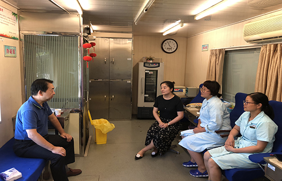 炎炎夏日,持续的高温炙烤着甬城。8月7日-10日,宁波市中心血站站长、献血办公室主任徐红,书记傅杏花,副站长、副主任黄凯、刘奕宇分别到宁波十个县市区献血屋(车)及献血办进行慰问,代表全市献血管理机构和采供血机构向高温天参加献血的市民及参加服务的志愿者表示感谢,并向坚守岗位的采供血一线职工表达亲切慰问。
