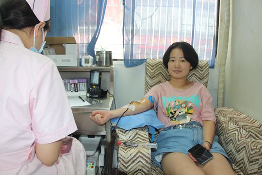 在人民路大唐献血屋,A型血的李梦娇坚持献血400毫升。她说:“明天就是乞巧节了,我希望病床上的患者早日输血康复。”