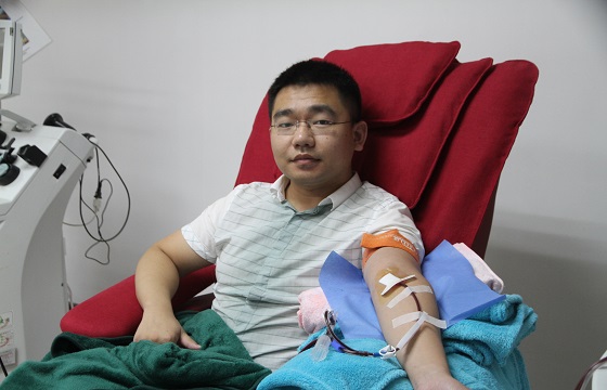 据悉,为己经产生输血抗体的单个患者配对血型,需要比对大量的同血型血液,也需要大量的献血者的血液样本。赵伟是众多献血者中一员, 31岁赵伟是一名公务员,在南昌海关工作,他常常自己趁着午休时间开车来到血站献机采血小板,他说这样既不影响工作也不影响献血,当问到为什么选择献机采血小板时,赵伟说:“因为我自己是学医出身的,我懂得献机采并不影响身体,而且身体恢复的快,更重要的是献机采的人很少,但是机采的用血需求更多,我愿意做一名能更有效率的治病救人的献血者。”