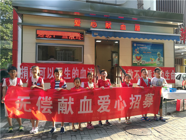 8月18日下午,江苏省血液中心联合金陵晚报小记者在夫子庙献血屋开展无偿献血爱心招募活动。台风过后,太阳依旧那么耀眼,小记者们在4点之前陆陆续续到达献血屋,来到献血屋的第一件事,是拿起桌上的宣传折页开始看,虽然年龄还小,不过这种认真的精神值得表扬。
