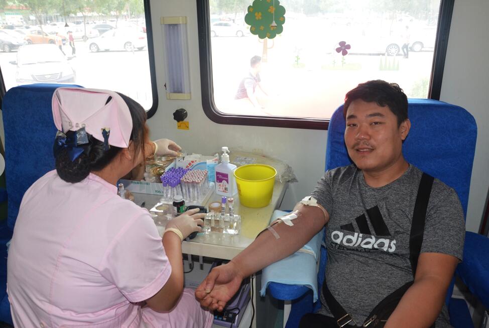 活动开始后,大家有序的进行献血前的填表、登记、初筛、采血。在众多献血者中,有一位献血者显得行色匆忙。他叫刘利松,在保险公司工作,献完血要赶着去上班。“知道采血车来,我一早就到了,至今献血已经有七八次了。”显然,刘立松已经是这里的常客了,护士问他这次是不是还献400毫升,他开玩笑地说,“500毫升也可以。”当被问及为什么要来献血时,刘利松答道,“经常献血对身体有好处,再有就是作为社会的一份子,要奉献爱心、帮助他人”。