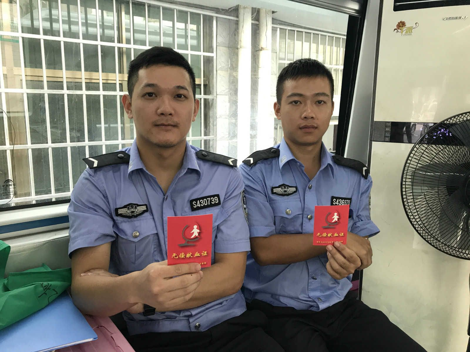活动现场,大家拿着无偿献血健康征询表,依次排队做着献血前的检查。队伍中,两名身着制服的小伙子引起了记者的注意,他们分别叫黄祯昌、田煜,是永兴县交警大队的工作人员。
