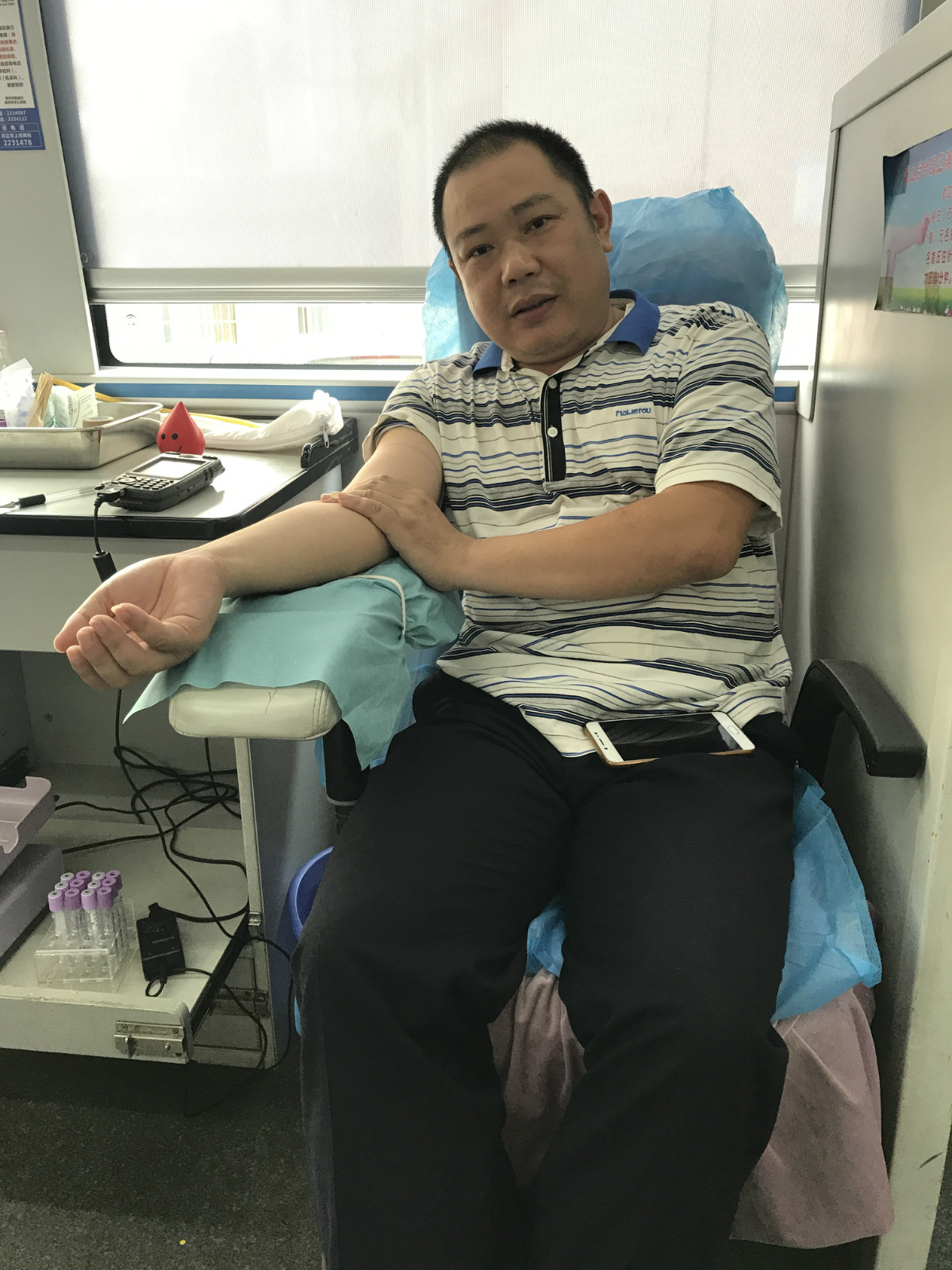 金龟镇计生办的工作人员廖明亮已经是第5次参加无偿献血,第一次献血是在20年前。“当时在山西当兵,部队里会经常组织无偿献血活动。”廖明亮说,他的献血经历中断了几年,前几年因为转氨酶过高,好几年不能参加,这几年自己把身体调养好了,终于又符合献血要求,所以近几年他都在参加无偿献血。